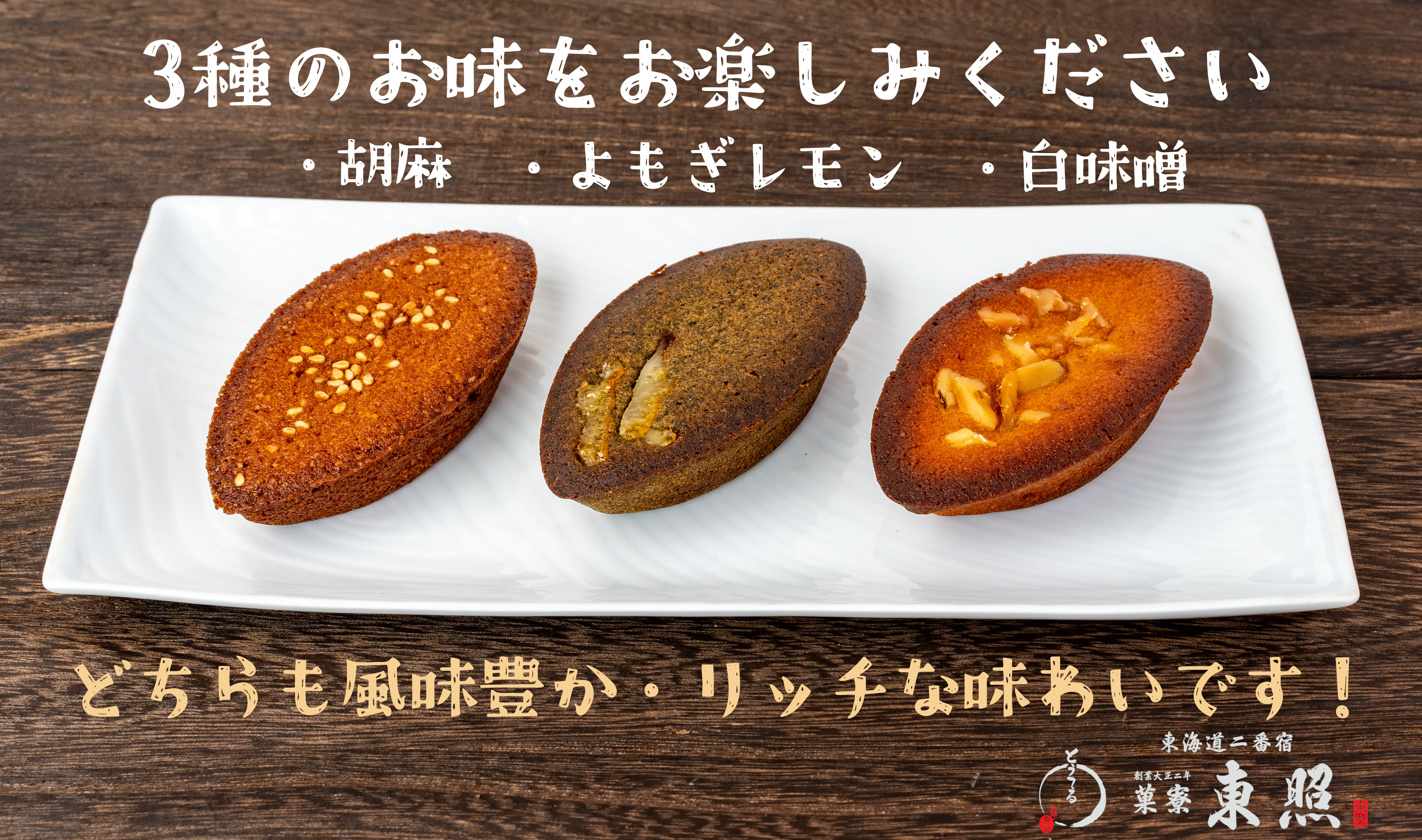 西京白味噌を生地に贅沢に練りこんでおり、あっさりしつつもコクがある、奥深い味わいに仕上げております。くるみの食感がアクセント。